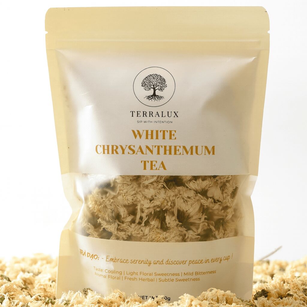 Delicate and aromatic, our White Chrysanthemum Tea is a timeless herbal infusion celebrated for its calming effects and gentle floral notes. Sourced from sun-dried chrysanthemum blossoms grown in nutrient-rich soil, this tea brews into a golden cup with a subtle sweetness and refreshing clarity.